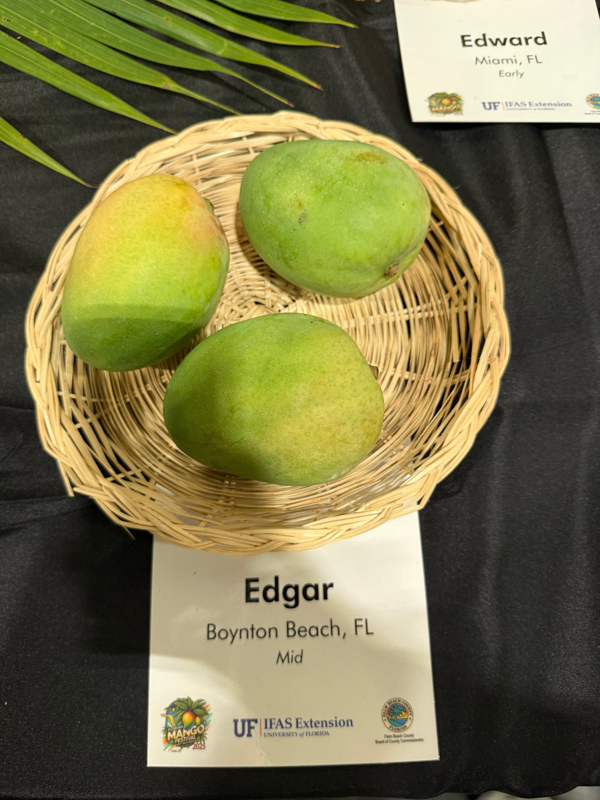 Edgar is from Gary Zill’s breeding program in Boynton Beach, FL, likely a seedling of Zill-80. The fruit is ovate, medium-sized, with a yellow background and light red/orange blush. The flesh is fiberless, firm, and has a high-quality classic subacid flavor.