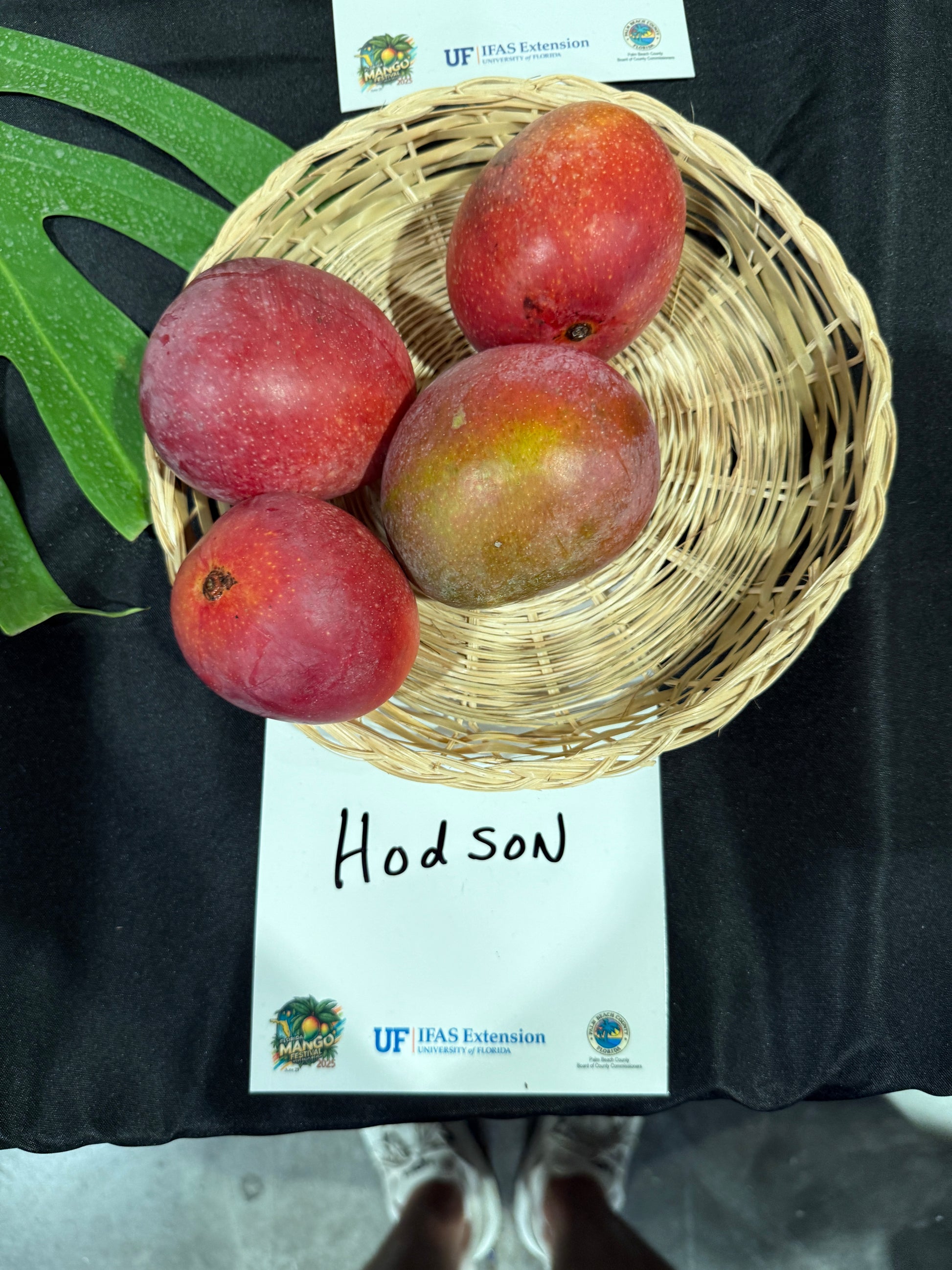 Hodson is a historic mango from Miami, Florida, prized for its striking appearance. The fruit are small and round, ripening to a vibrant red that makes them stand out in any grove. Inside, the flesh is yellow, completely fiberless, and offers a smooth, classic mango flavor. The seed is monoembryonic.