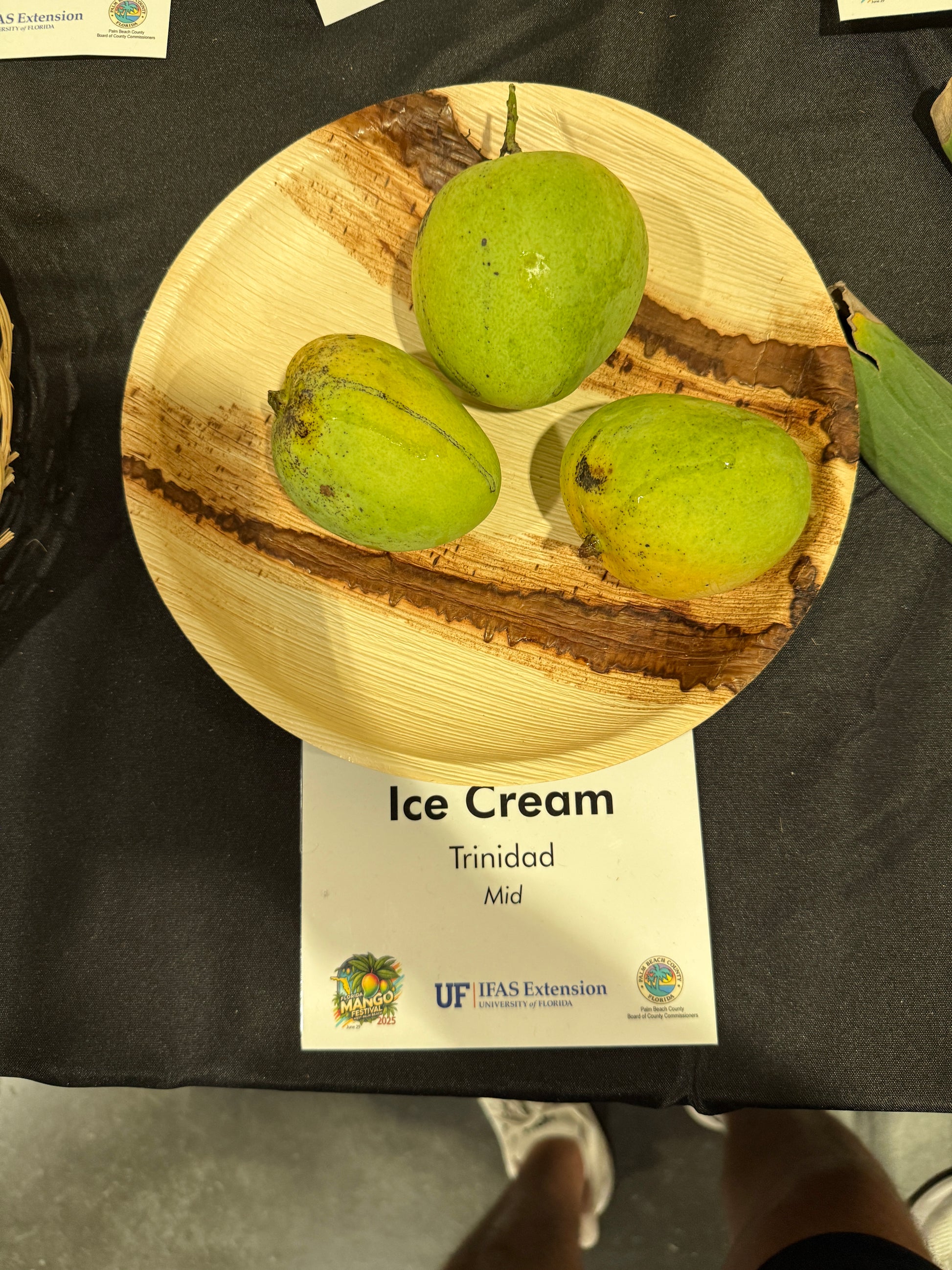Ice Cream is a mango from Trinidad, likely descended from Julie, and was introduced to the U.S. by Maurice Kong in the 1990s.